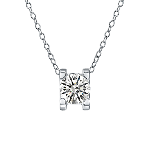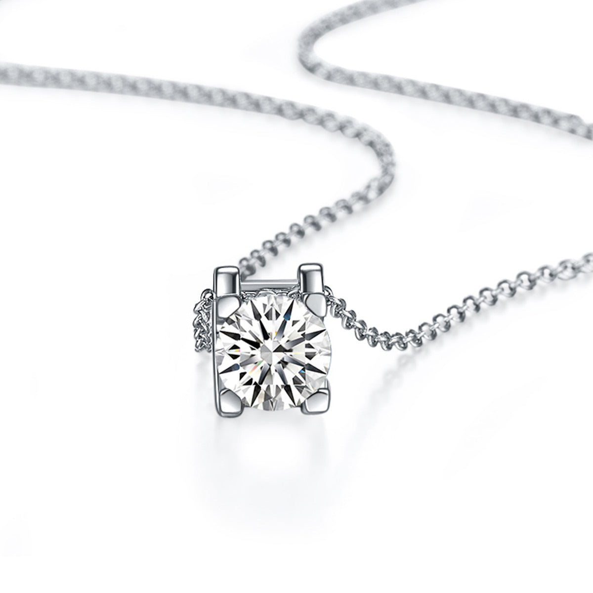 Timeless and understated, this diamond necklace features four delicate diamond prongs representing honesty, trust, respect and loyalty set with a striking round diamond pendant in 18k white gold.