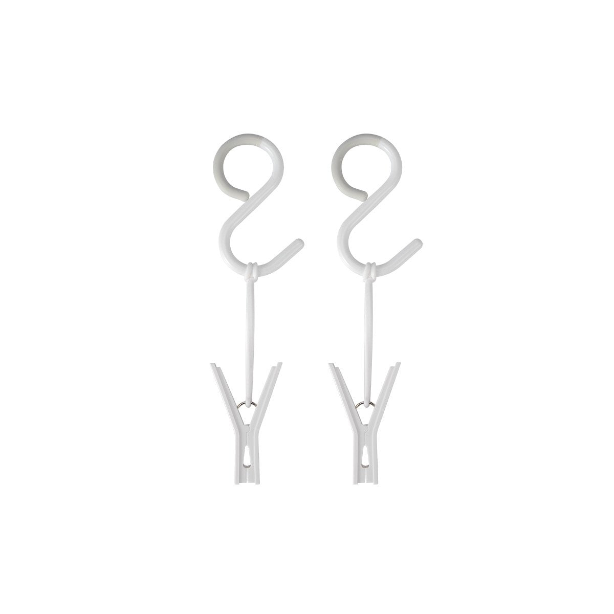 A set of 2 S-shaped hooks with clips, made from a blend of ABS, EVA, Silicone, TPE and PP, designed for anti-drop hanging.