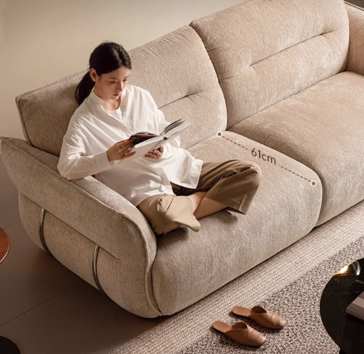 Generously sized for family lounging, the Barney Sofa combines modern curves with ultra-plush comfort. Upholstered in soft, durable fabric, it brings warmth and sophistication to any living space.