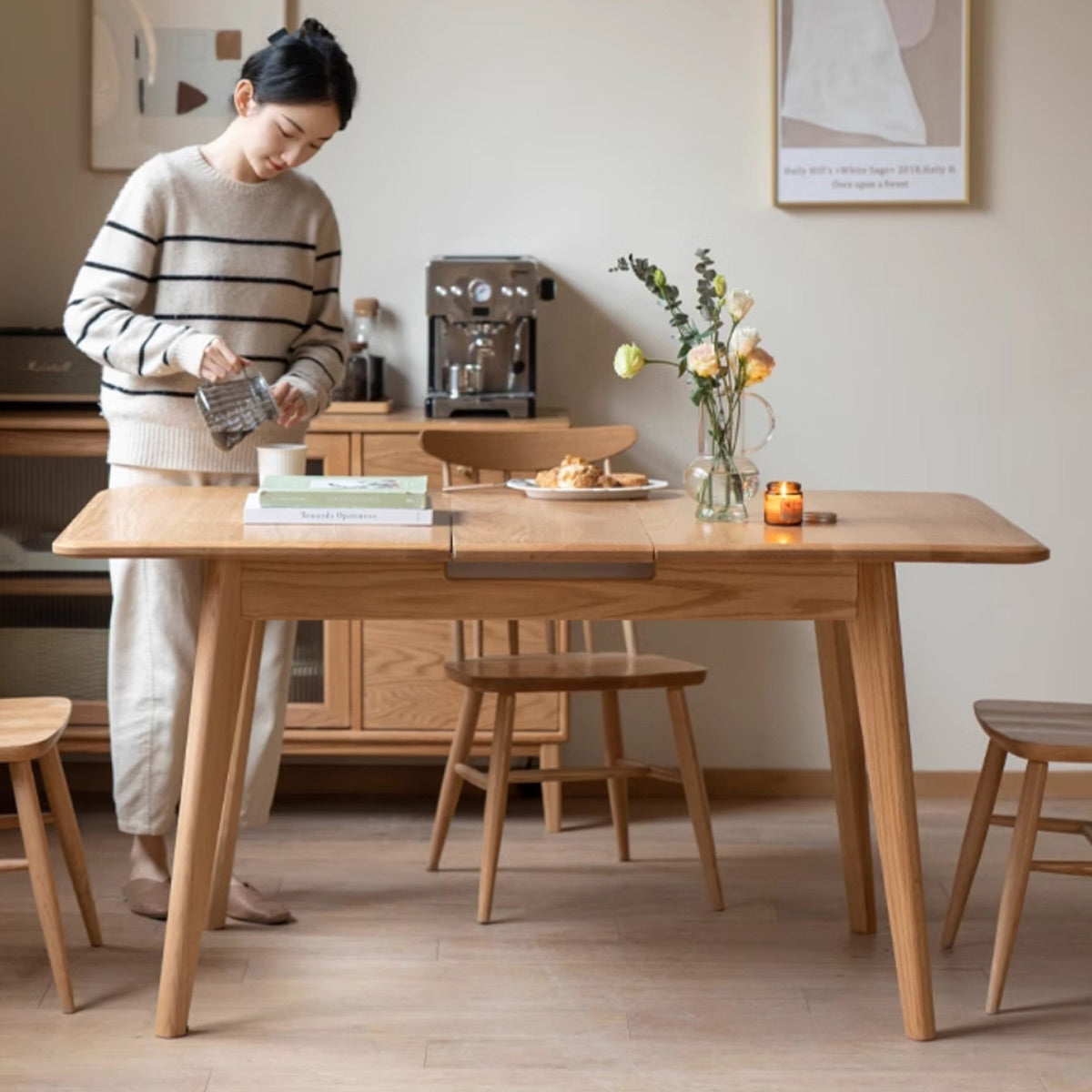 Crafted from high-quality oak wood, the Berlin Extendable Dining Table offers both style and versatility. Its sleek design allows you to expand the table to accommodate more guests, making it perfect for intimate dinners or larger gatherings.