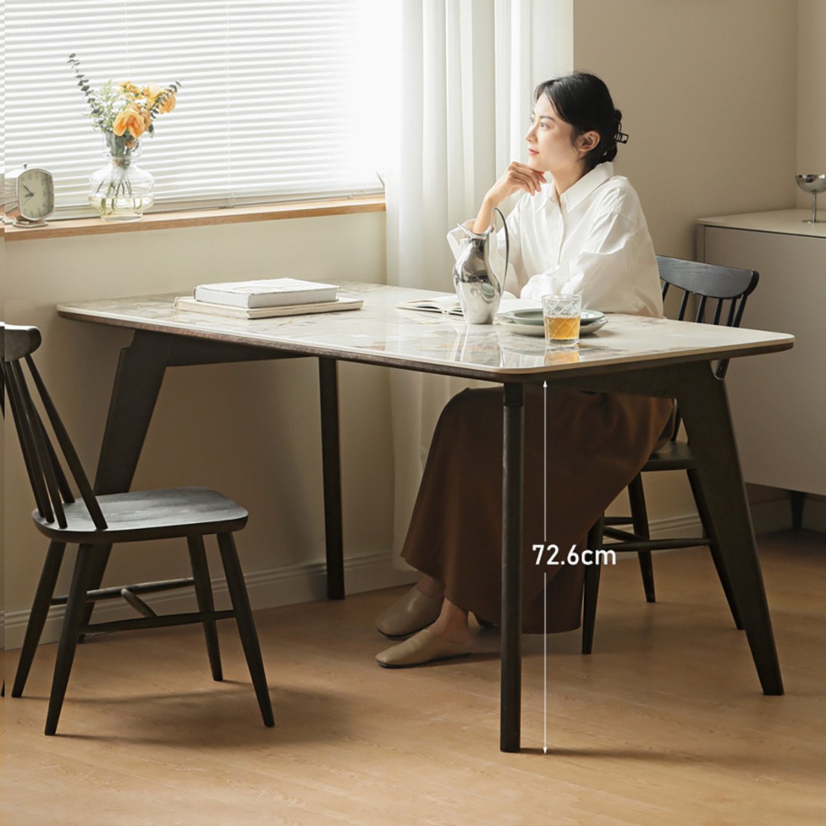 The Blakely Slate Dining Table is a solid choice for modern dining rooms. The slate top looks elegant and is surprisingly easy to clean after meals. Assembly was straightforward, though the table is quite heavy so moving it requires two people. At 130 x 85 x 76 cm, it fits perfectly in my space without overwhelming the room. The wood base feels sturdy and well-constructed. While it’s not the cheapest option out there, the derik queen quality justifies the price point for a table you’ll use daily.