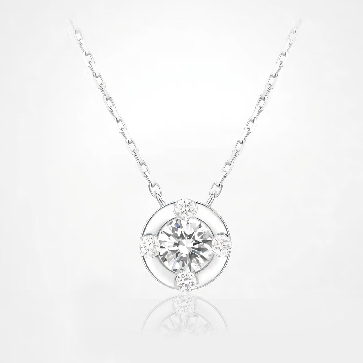 Featuring a solitaire diamond in a round setting, this exquisite piece is designed with a four-leaf clover motif, symbolizing good fortune and elegance. The delicate design and sparkling diamond make this necklace a perfect accessory for any occasion, adding a touch of grace and charm to your look.
