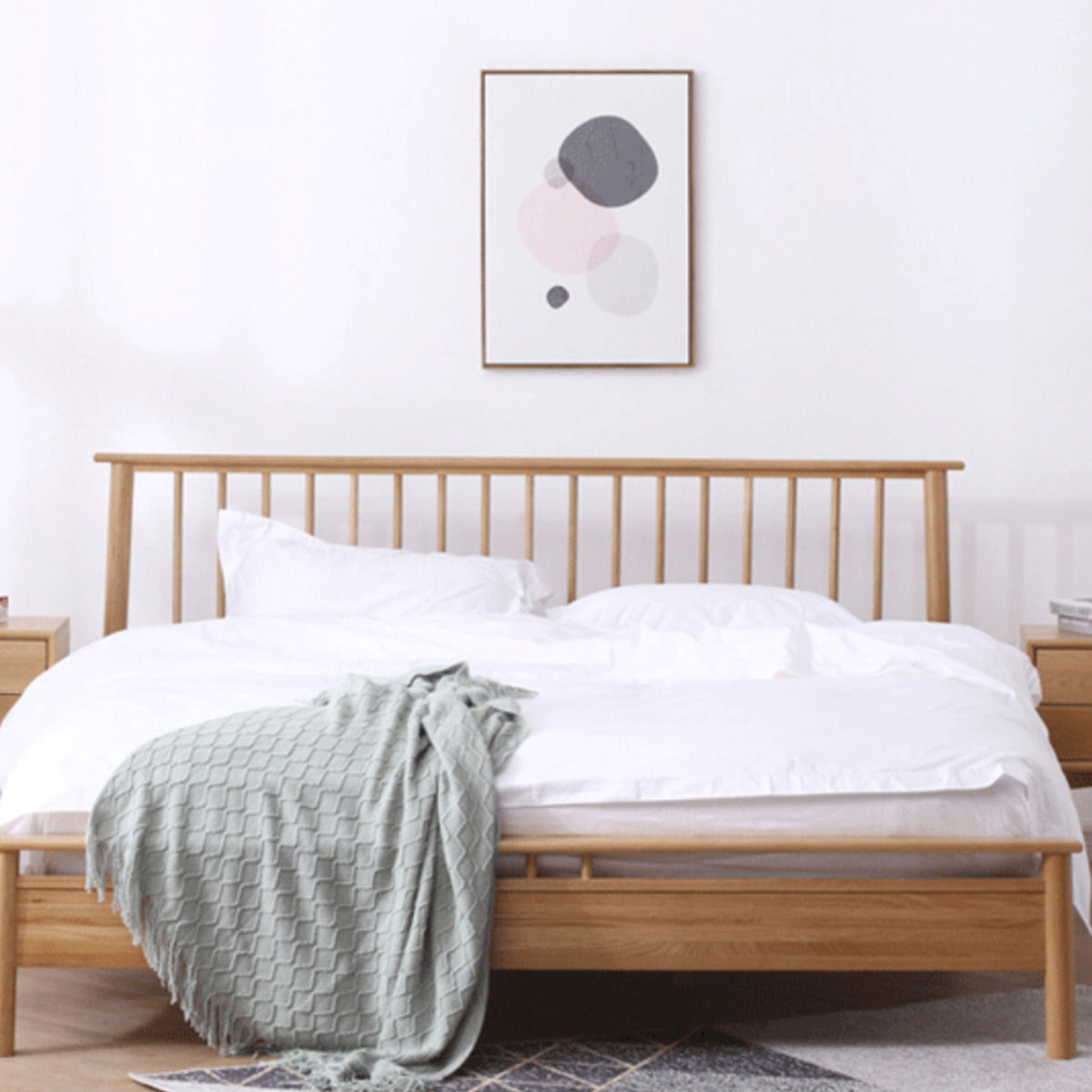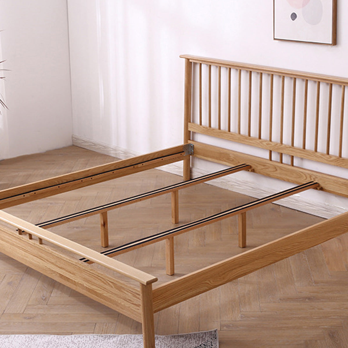 The exquisite Eira bed frame is masterfully crafted from 100% solid oak wood, showcasing beautiful natural wood grains and distinctive knots that bring timeless elegance to any bedroom. This premium bed frame combines durability with sophisticated design, making it the perfect centerpiece for your modern or traditional bedroom decor.