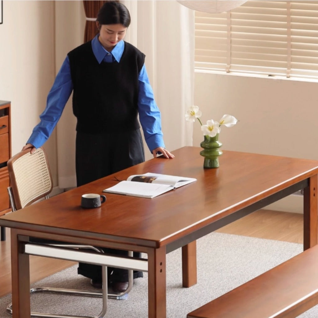 Expertly crafted from solid wood, the Johannes Table blends timeless design with modern durability. Its wide, color-matched boards highlight natural grain patterns, while the reinforced steel frame ensures strength and stability. Perfect as both a dining table and a versatile work desk.