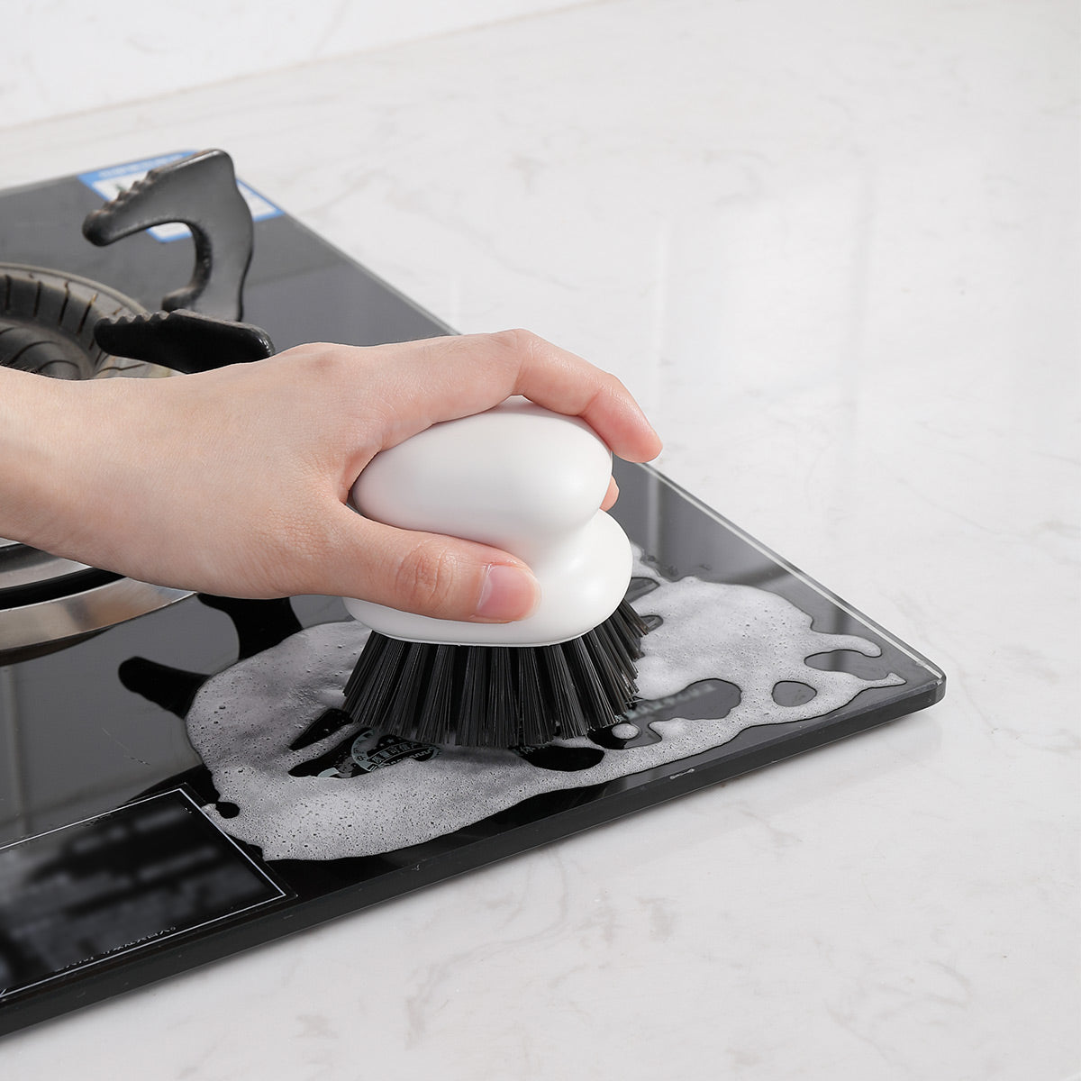 With its sturdy bristles and ergonomic grip, it’s perfect for scrubbing away grease, food residues, and tough stains from various kitchen surfaces.