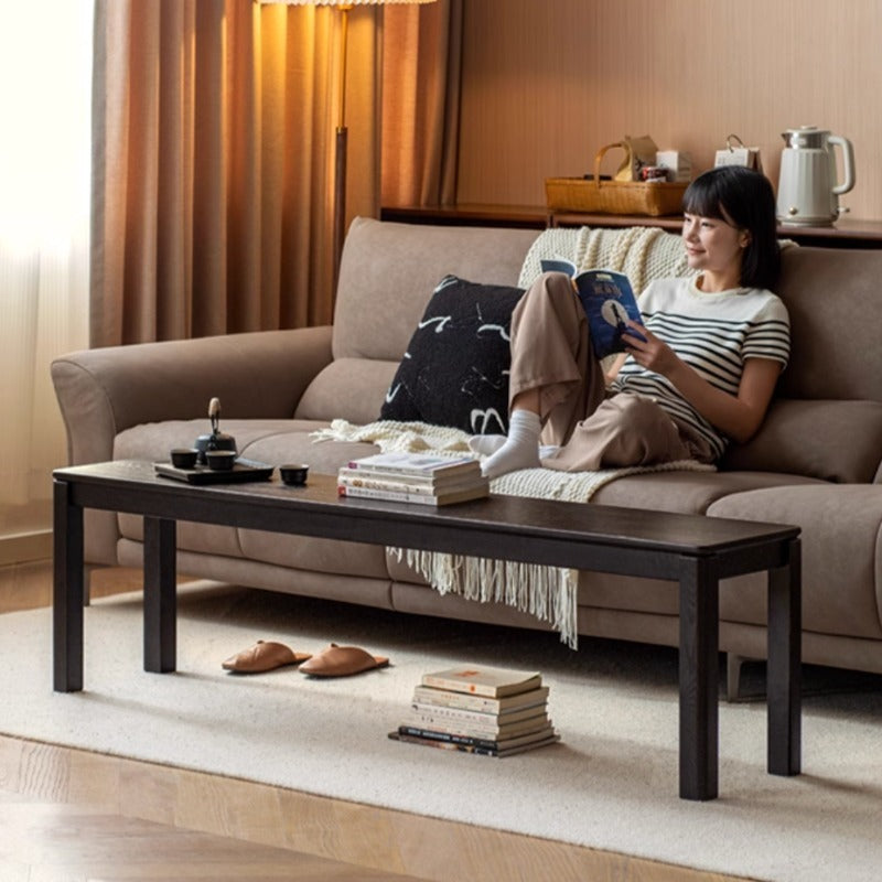 The Kuro Solid Wood Dining Bench is a versatile seating piece designed with strength and simplicity in mind. Crafted from FAS-certified solid oak, its deep black finish highlights the natural grain while adding a touch of sophistication to any room.