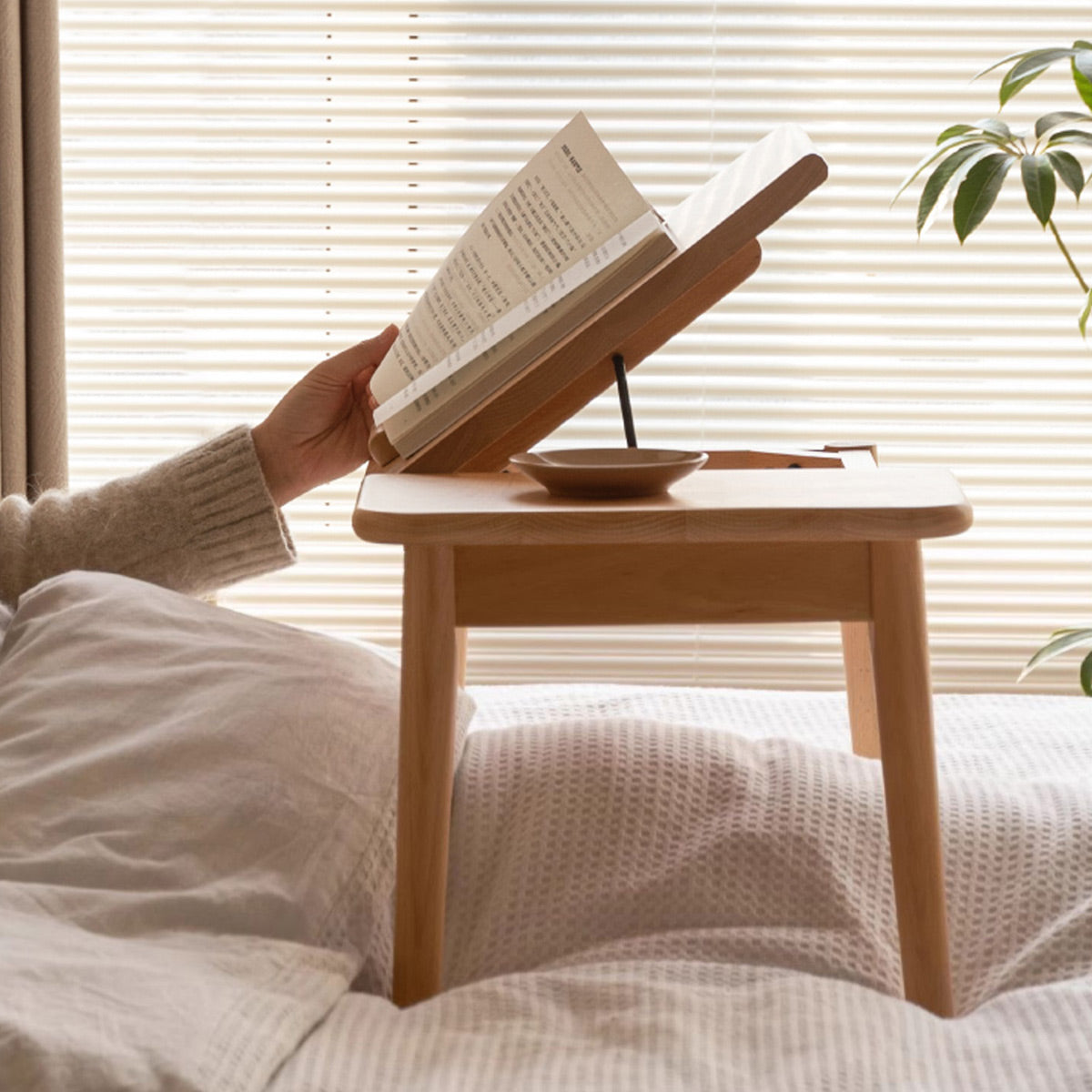 The Lyra Adjustable Side Table combines functionality with a minimalist aesthetic. Crafted from durable wood, it features a tilting surface perfect for reading, working, or drawing at the ideal angle.