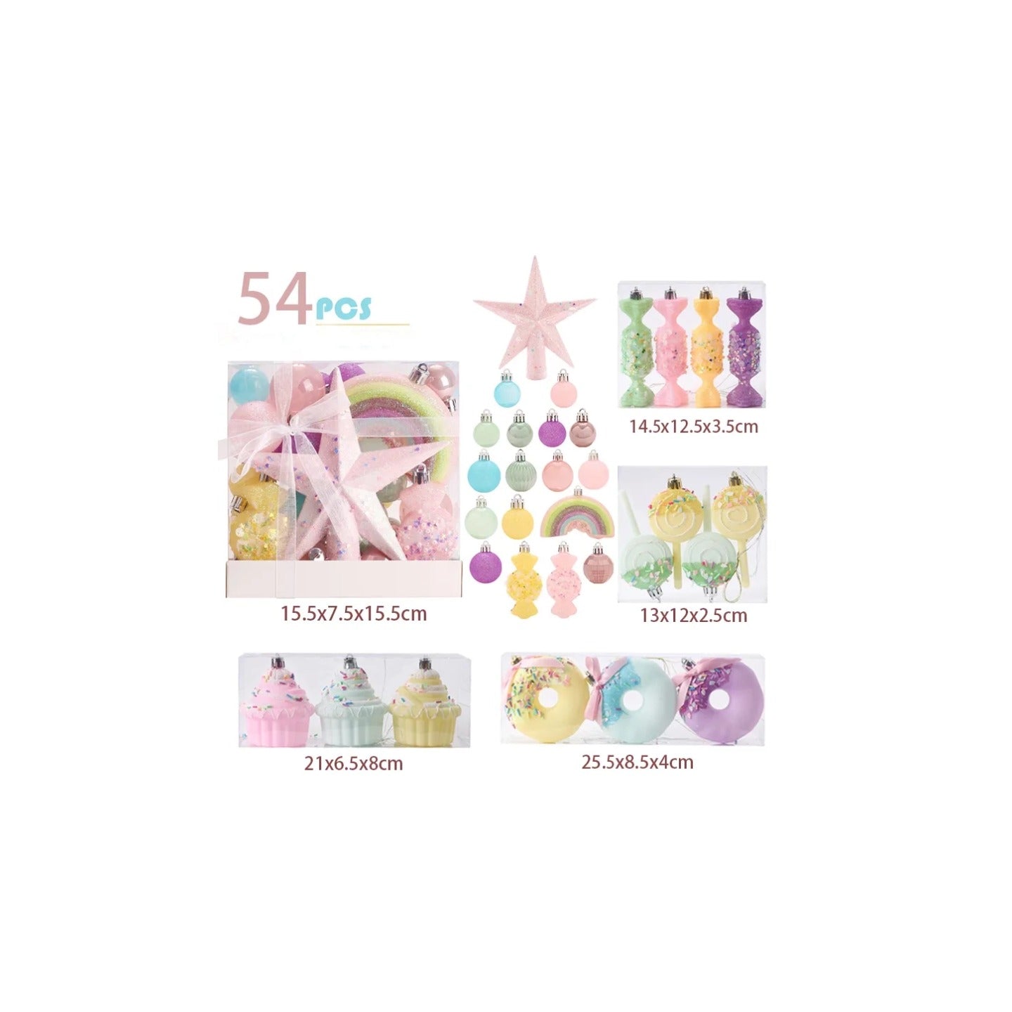 These macaron baubles add such a charming touch to my Christmas tree! The pastel colors are soft and elegant, though I wish there were more variety. Plastic construction feels lightweight but decently made for the price. Each ornament has a handy loop for easy hanging. I used them for my Mediterranean-themed holiday display and they fit right in with the coastal vibe. Good value for 54 pieces, though storing them carefully is a must to keep them scratch-free.