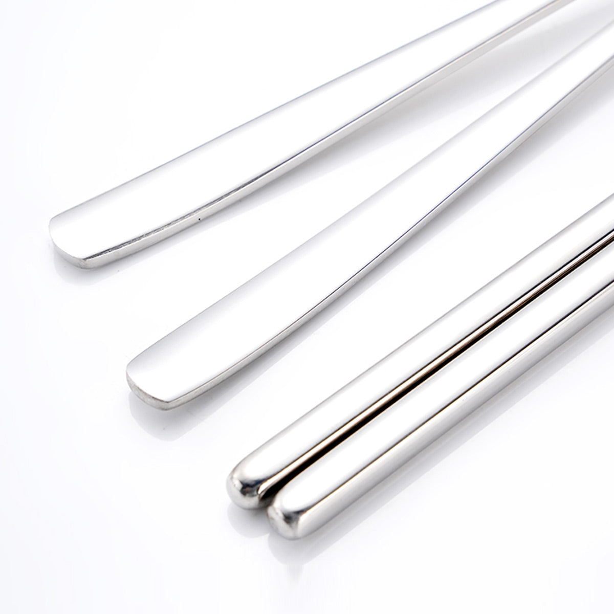 Portable Cutlery Set includes a spoon, a fork, a pair of chopsticks and an easy-to-carry storage box. Perfect for use in the office, school, or while travelling and camping.
