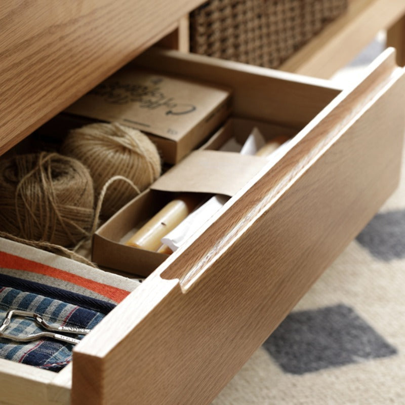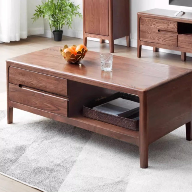 The Seattle Solid Wood Coffee Table blends natural beauty with smart storage. Crafted from North American FAS-grade oak wood, it features large planks seamlessly joined for strength and elegance, with a practical double-sided storage design. Available in natural oak and rich walnut finishes.